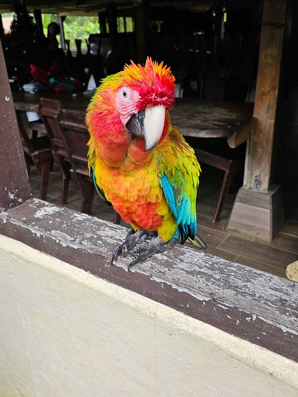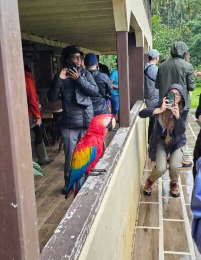 The tropical ecology class headed to Sarapiqui today! Along the way, they stopped at the Mirador Cinchona Cafe to view a variety of birds at their feeders and then made a visit to Don Alvaro’s Macaw Sanctuary to see several Scarlet Macaws up close. They also learned how to mill sugar cane! The class finished up the day in Sarapiqui, where they will spend the next few days monitoring endangered macaws.