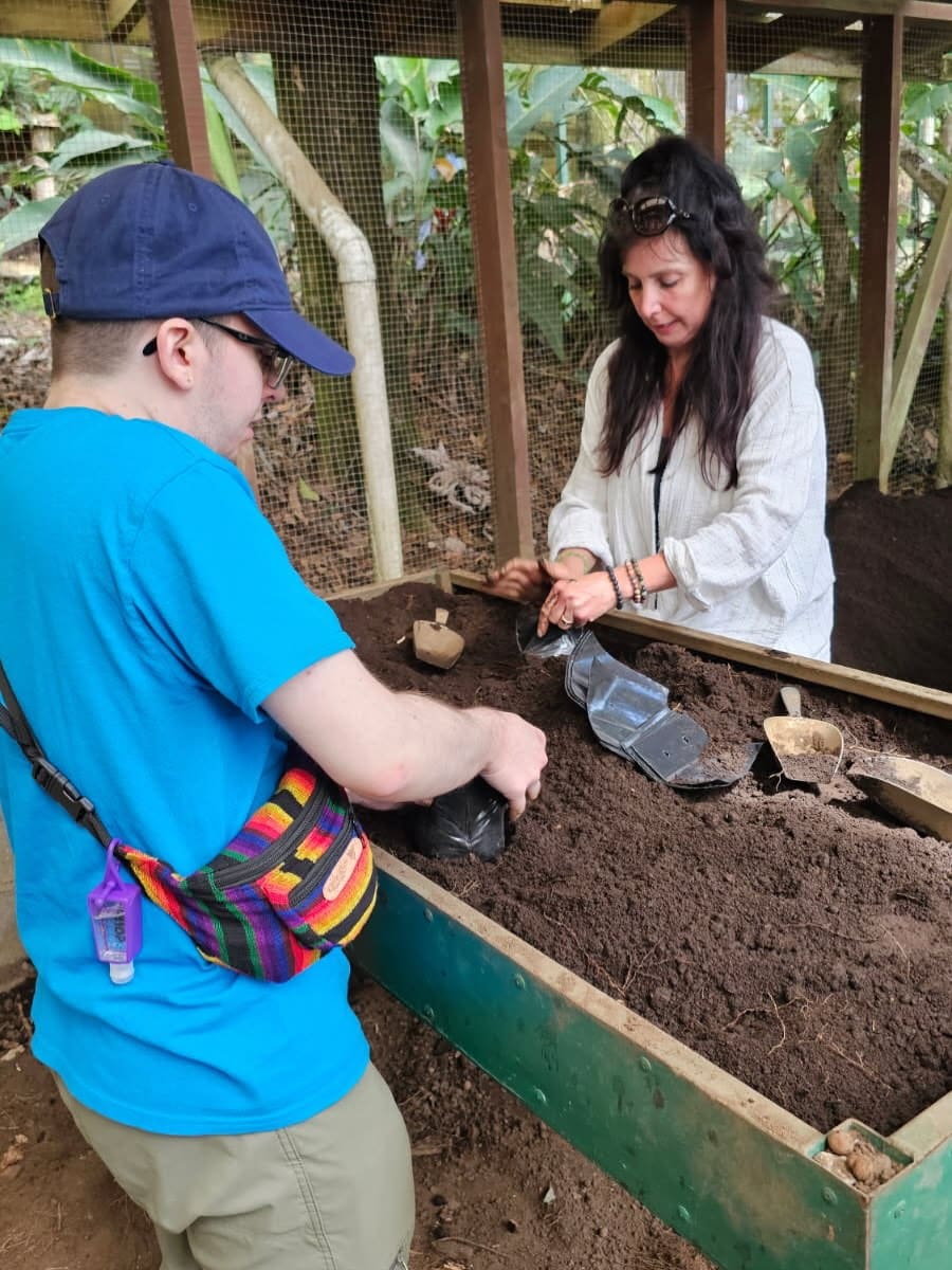 The tropical ecology students spent another day in Monteverde! They started the day with a tour of Life Monteverde, a sustainable coffee farm, where they learned about the process of growing, harvesting, and processing coffee. They were also introduced to several native edible Costa Rican plants growing on the farm! Later, they birded at Curi Cancha, a cloud forest preserve, and then finished the day with a talk with a Quaker family who founded the Monteverde community and established the Monteverde cloud forest preserve that they will visit tomorrow.