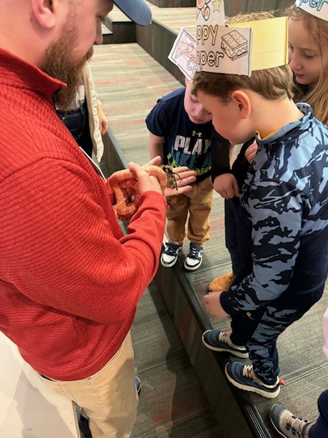 As part of this year’s “Camp Out” theme, Dr. Iacovazzi read engaging stories featuring a spider and a snake and introduced students to live spiders and snakes to enhance the learning experience. Through this interactive presentation, students learned about the ecological importance of these often feared and misunderstood species and explore how wildlife biologists study and protect them.
