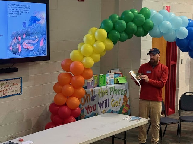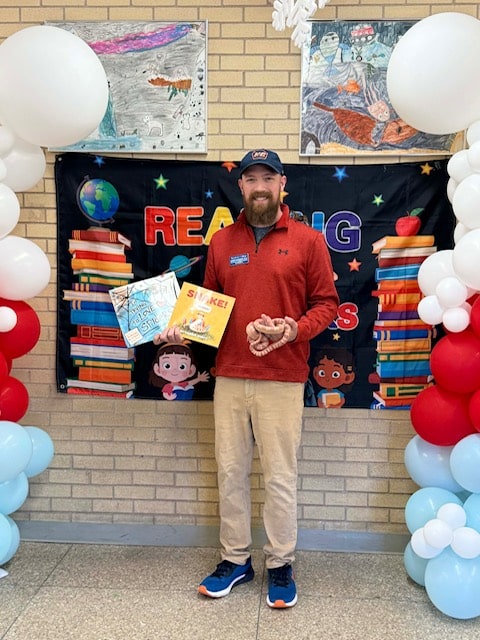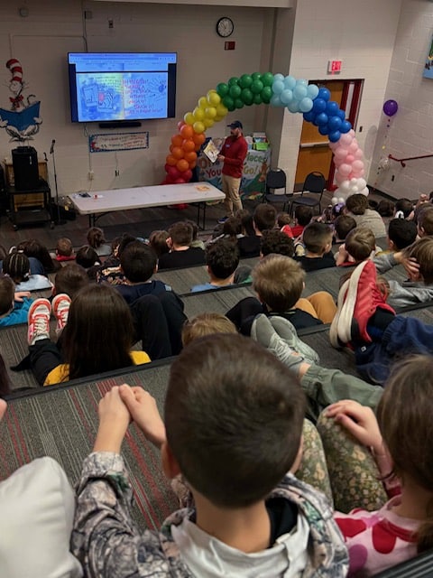 Dr. Joseph Iacovazzi, Professor of Wildlife Biology and Chair of the Department of Biological and Physical Sciences and Mathematics at Keystone College, served as a themed guest reader at Moscow Elementary School on Wednesday, March 4, in celebration of Read Across America Week.